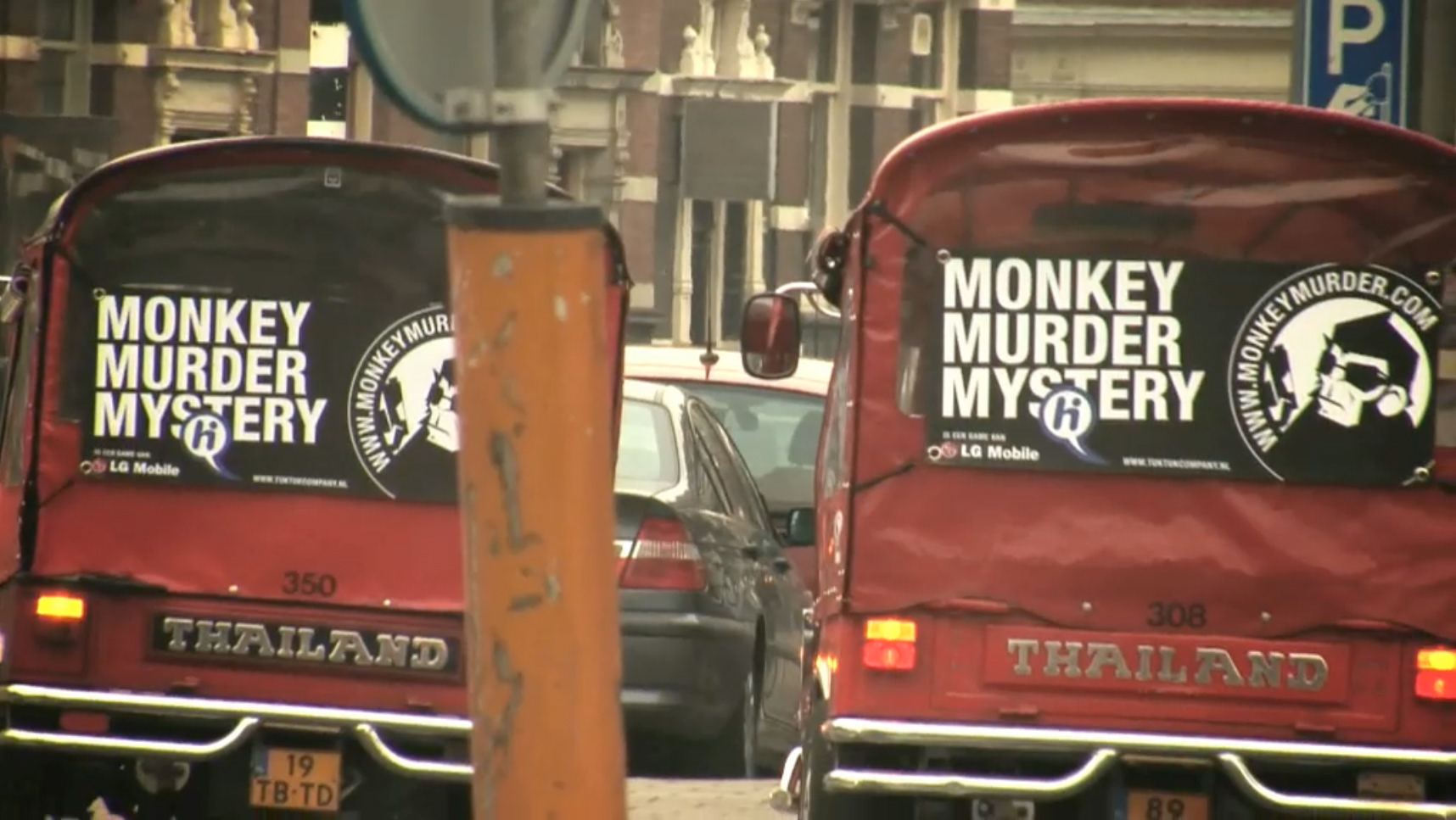 Players in four major Dutch cities were fighting their MonkeyMurderMystery battle for weeks, using internet, mobile phones and printed media. They received and sent assignments through their mobile and were given clues in printed media as well as on the internet. The end event & battle was featured at MTV.